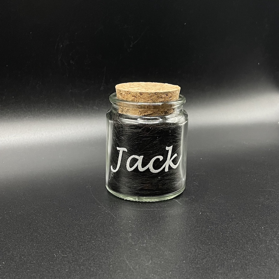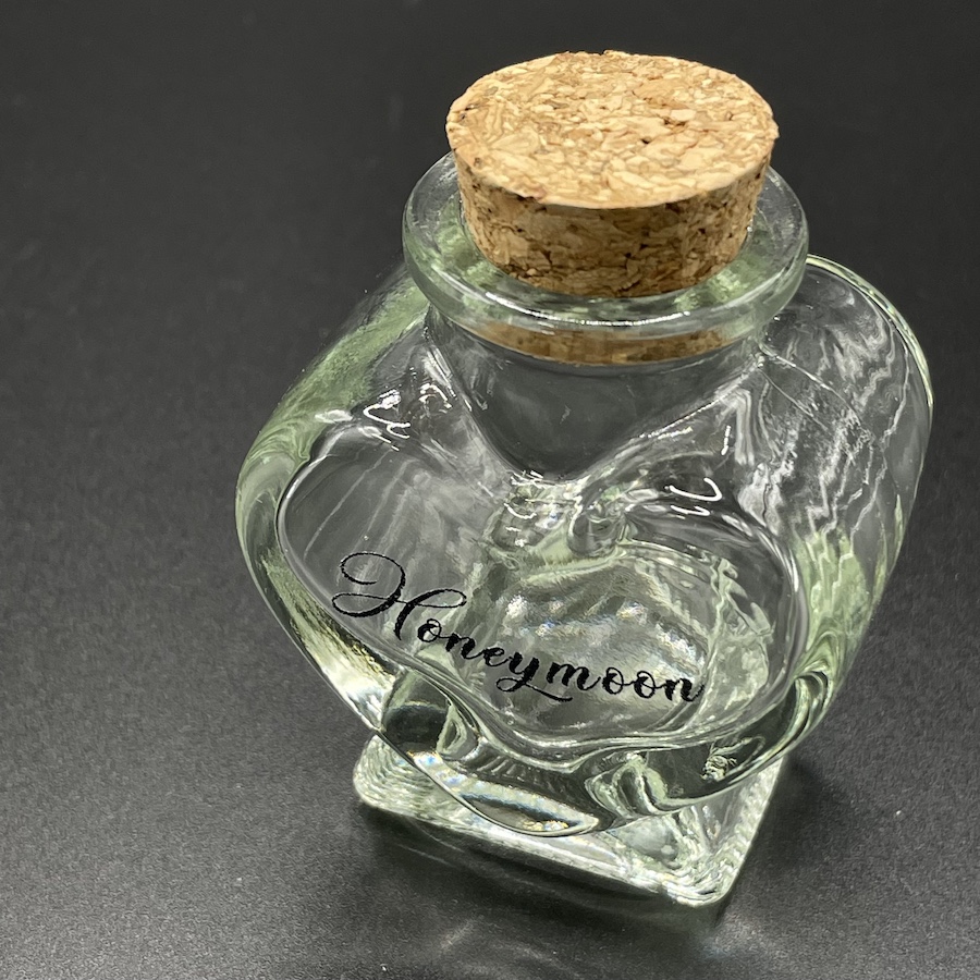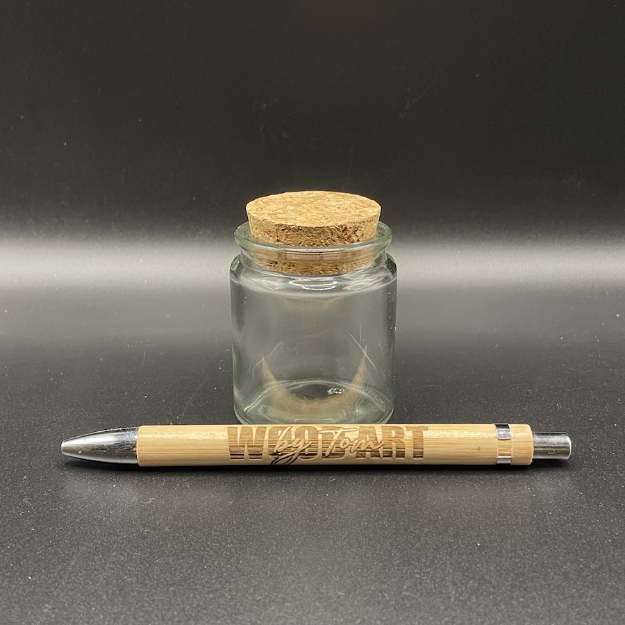 Glazen potje met jouw eigen logo, tekst of ontwerp. Leuk om bijvoorbeeld het zand van jullie huwelijksreis in te doen, of zoals op de foto een pluk manen van je paard. De kurk om het af te sluiten maakt het potje helemaal af. Zoals bij alle glazen producten die je in deze webshop kunt vinden, kun je kiezen voor een lichte gravering of donkere gravering (zie foto met hartvormig potje als voorbeeld). De donkere gravering is vooral goed te lezen met een lichtkleurige (of geen) inhoud. De lichte gravering is juist aan te raden bij een donkere inhoud van het potje.