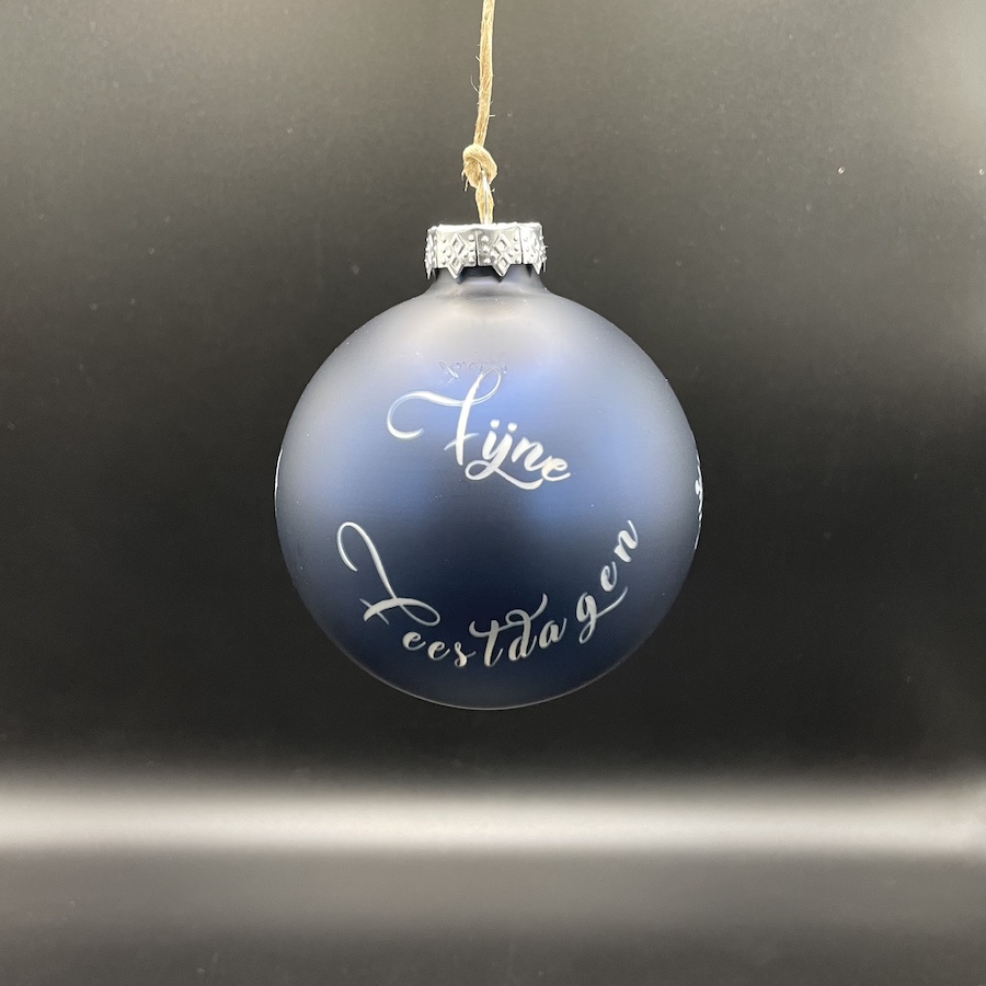 Dat is nog eens leuk voor in de boom, een gepersonaliseerde kerstbal met jouw eigen ontwerp, tekst of logo in de kleur blauw. De kerstballen zijn van glas en zowel leverbaar in glanzend als in mat, ieder met z’n eigen charme. Verder kun je kiezen voor een gravering op de voorkant en/of de achterkant  of 1 grote gravering. De kerstbal heeft een diameter van ongeveer 8 cm. De graveerbare ruimte per kant is ongeveer 10 x 5 cm, voor 1 grote gravering is het 25 x 5 cm.